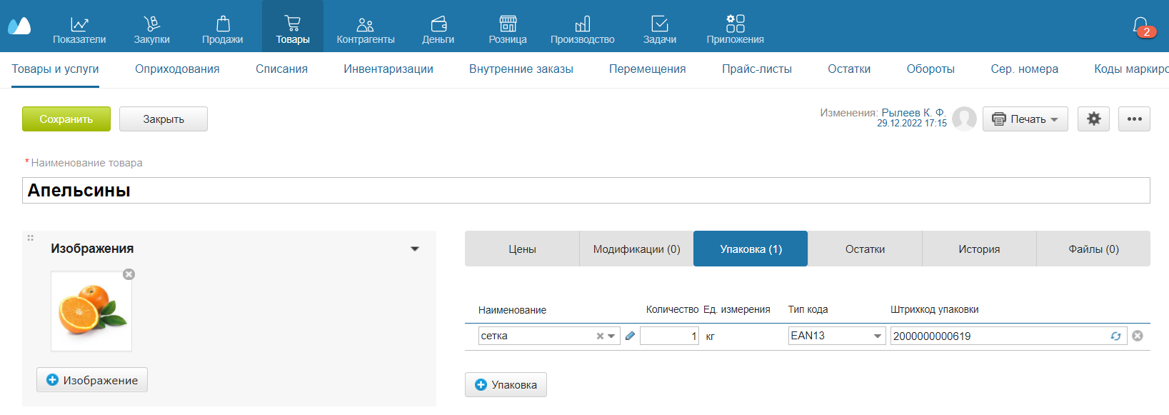Один товар может иметь сколько угодно штрихкодов. Вы можете импортировать товары со штрихкодами.